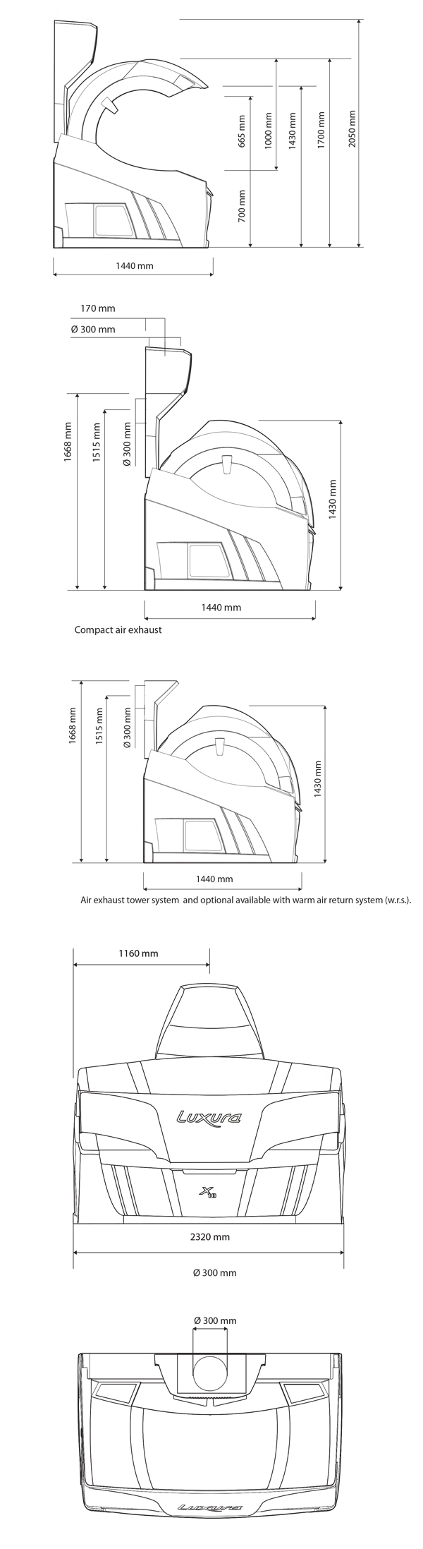 A lenyűgöző Luxura X10 két különböző; 46 és 52 csöves kialakításban érhető el. Ezen kialakításokon belül további készülékvariánsok közül választhat. A szolárium ágyrészében lévő kétméteres csövek használatával garantált a teljes testre kiterjedő barnulás külön vállbarnító beépítése nélkül is. A tetőrészben négy erőteljes nagynyomású arcbarnító található.