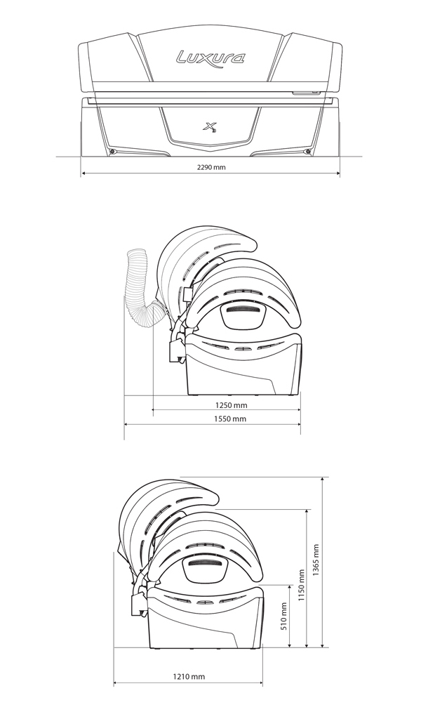A Luxura X3-as modellje egy kis helyigényű kompakt szoláriumkészülék.
