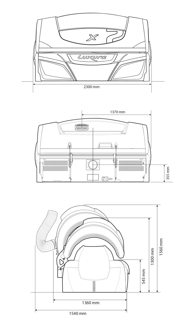 Bár a Luxura X7 egy csodálatosan tágas kialakítású szolárium, mégis kevesebb helyet igényel, mint azt gondolná. A készülék hosszát az optimális használathoz alakították, ami azt jelenti, hogy így nem lett „túl nagy”.